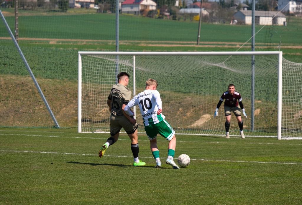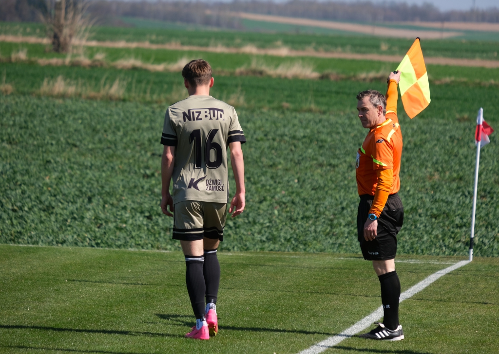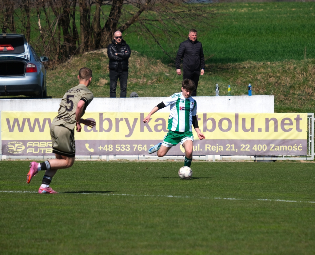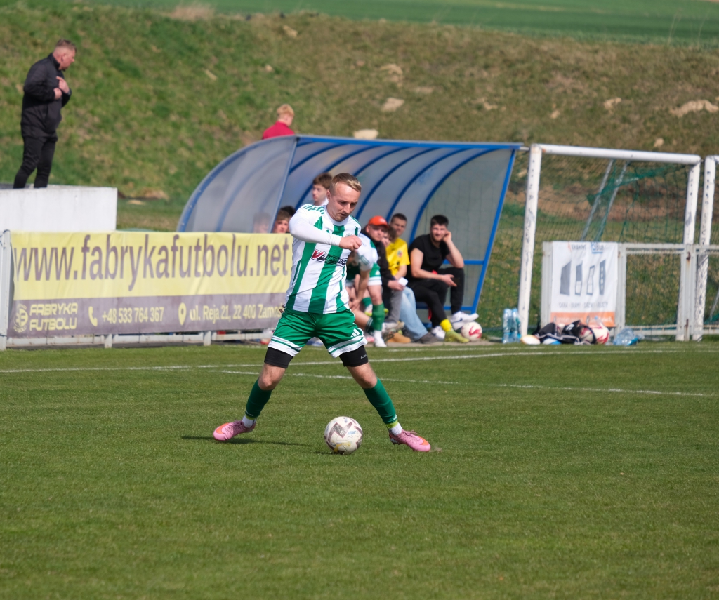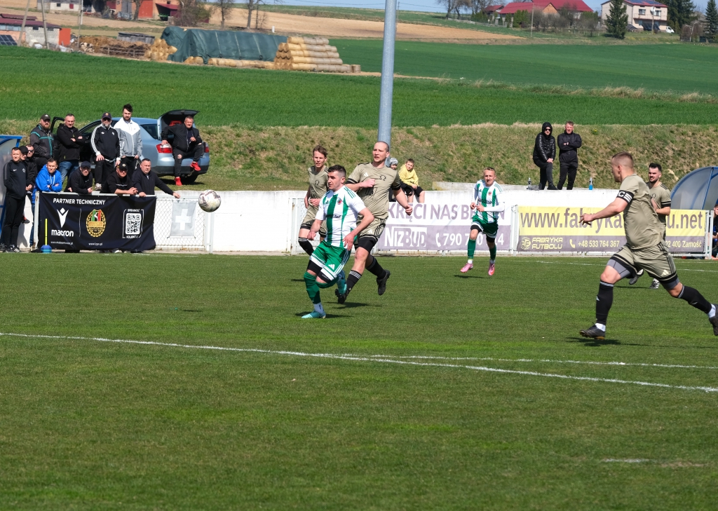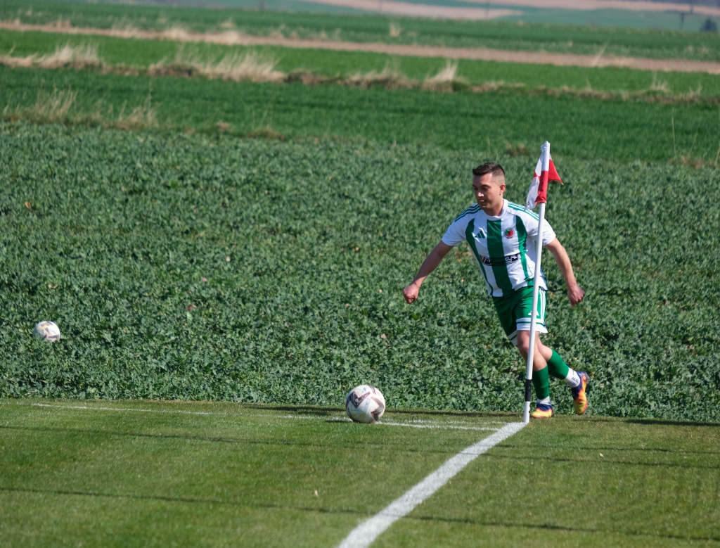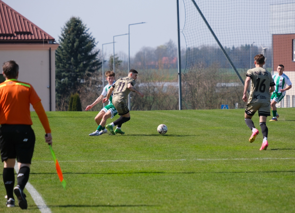 Bramkę dla naszej drużyny zdobył Kacper Świtała, który po rzucie rożnym popisał się skutecznym strzałem głową. Już w 8 minucie gospodarze zostali osłabieni czerwoną kartką dla bramkarza, który złapał piłkę poza polem karnym. Gol zdobyty w 34. minucie dawał nadzieję, że w kolejnych fragmentach meczu będziemy kontrolować wydarzenia na boisku.