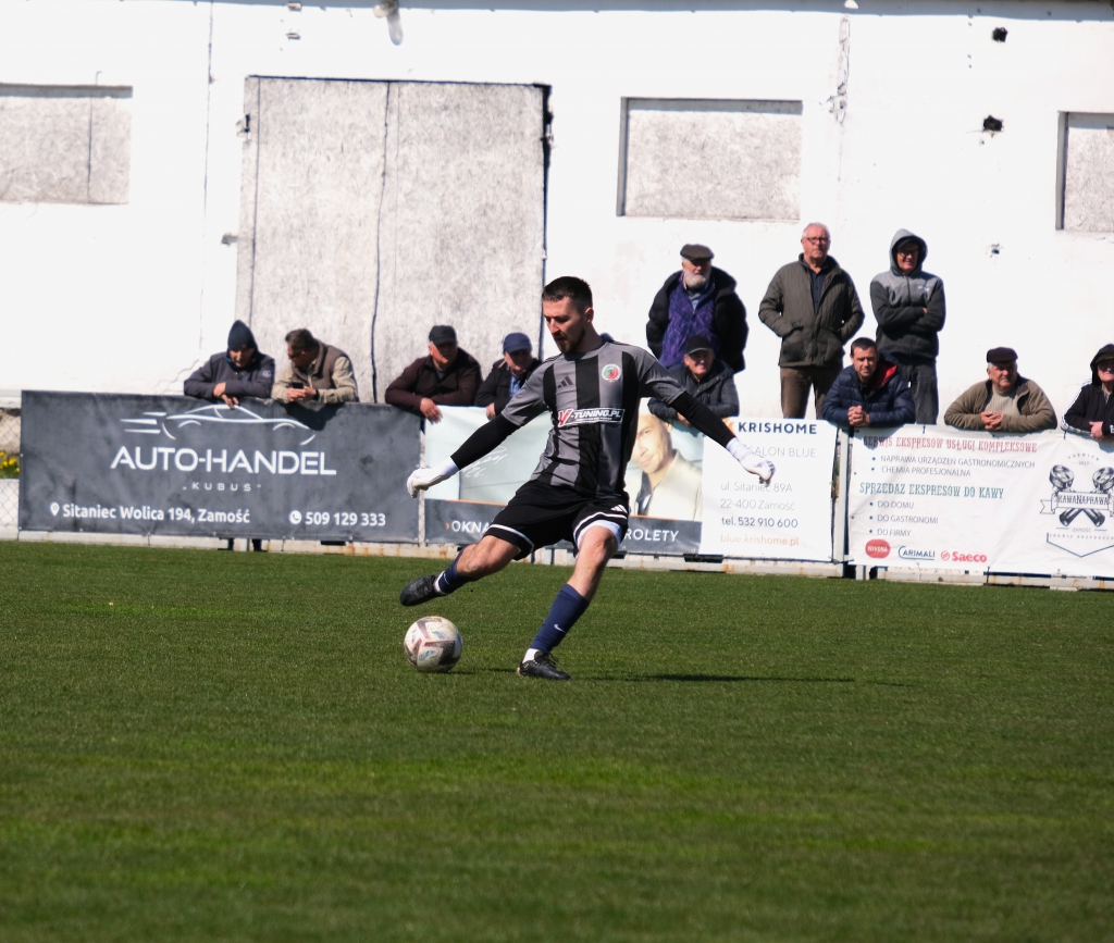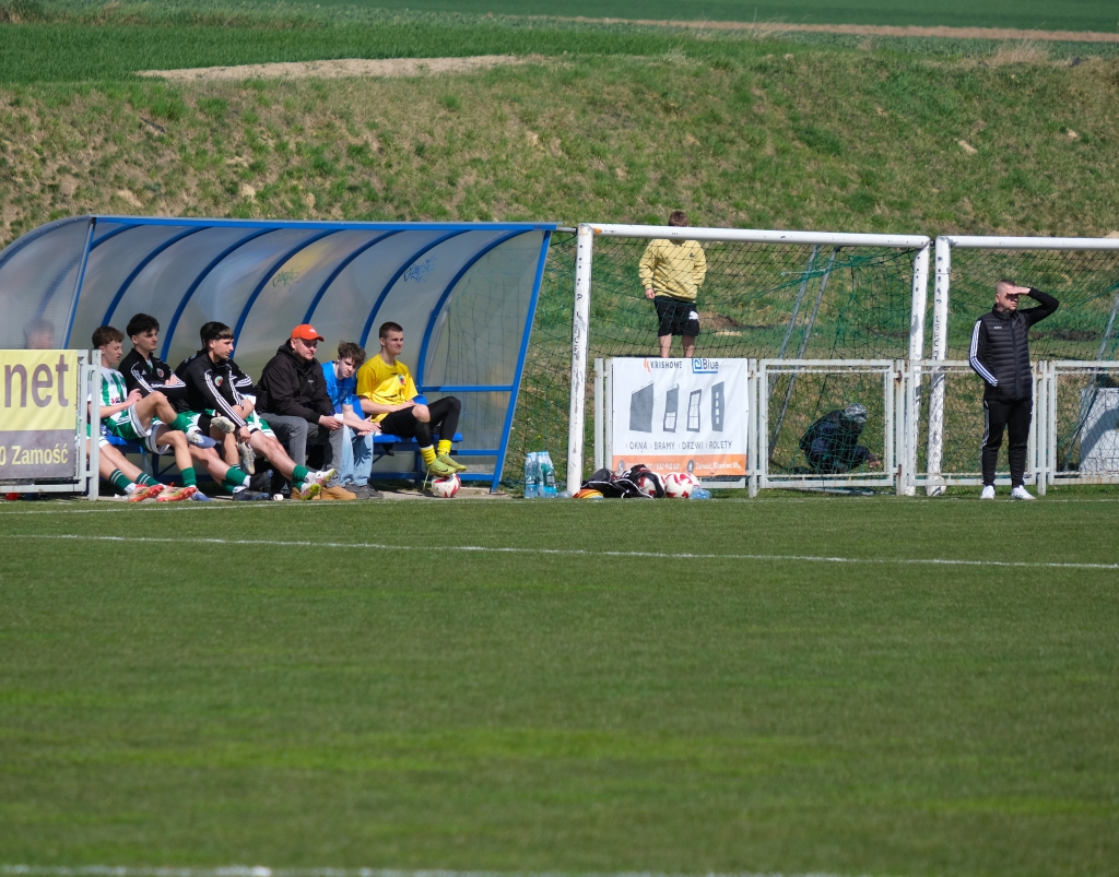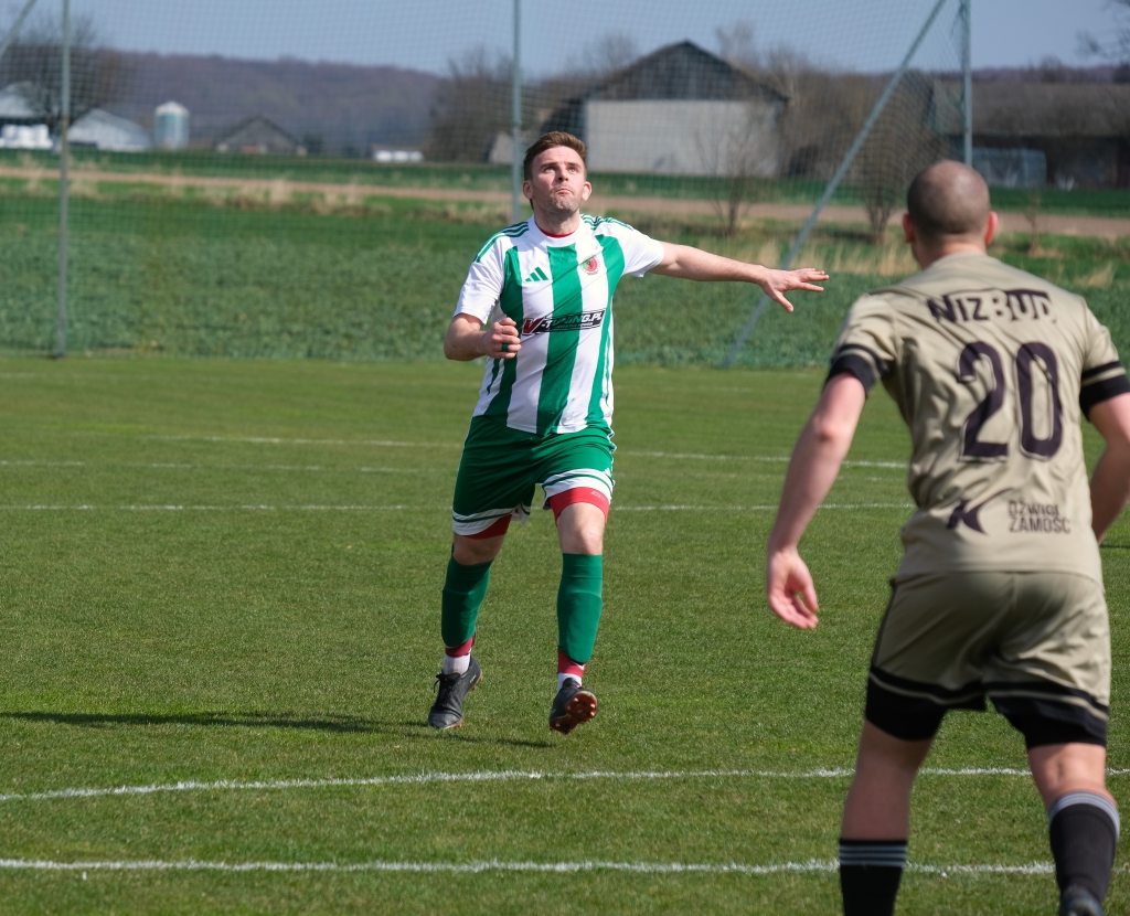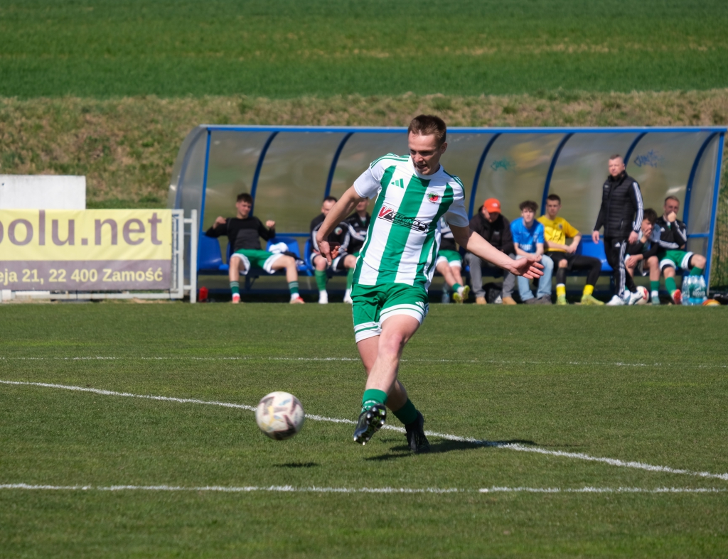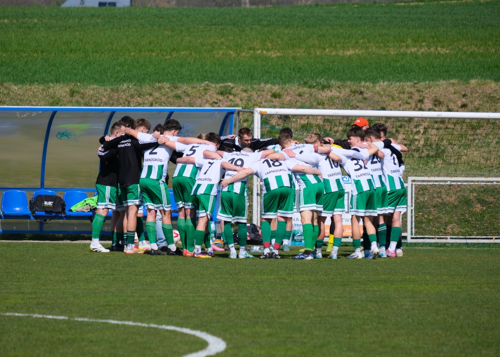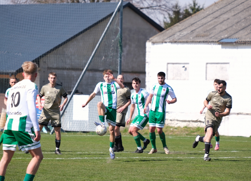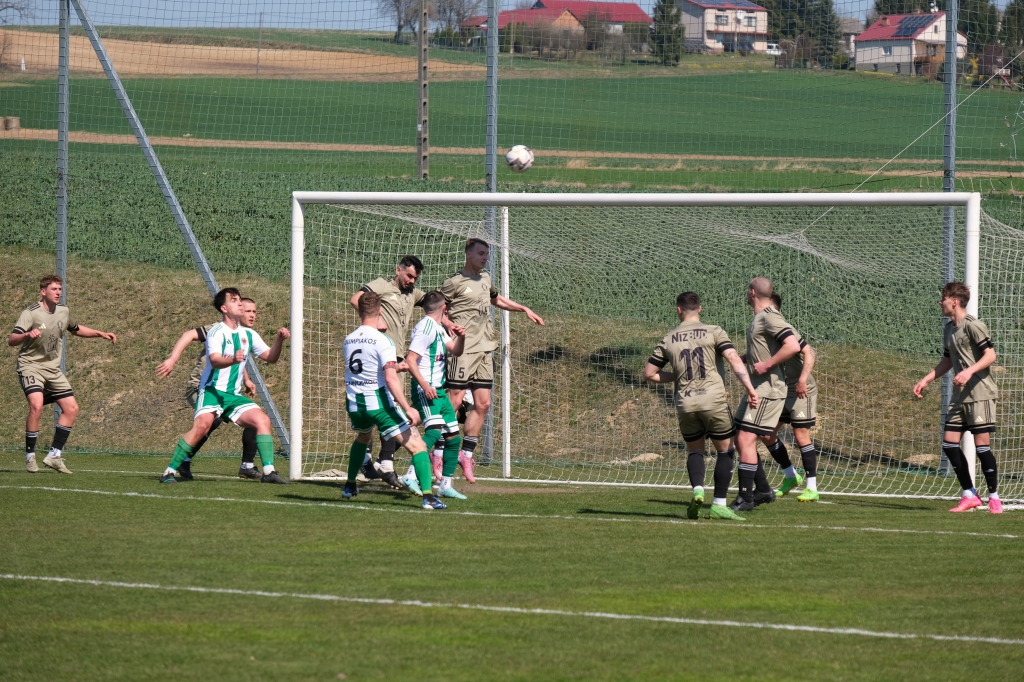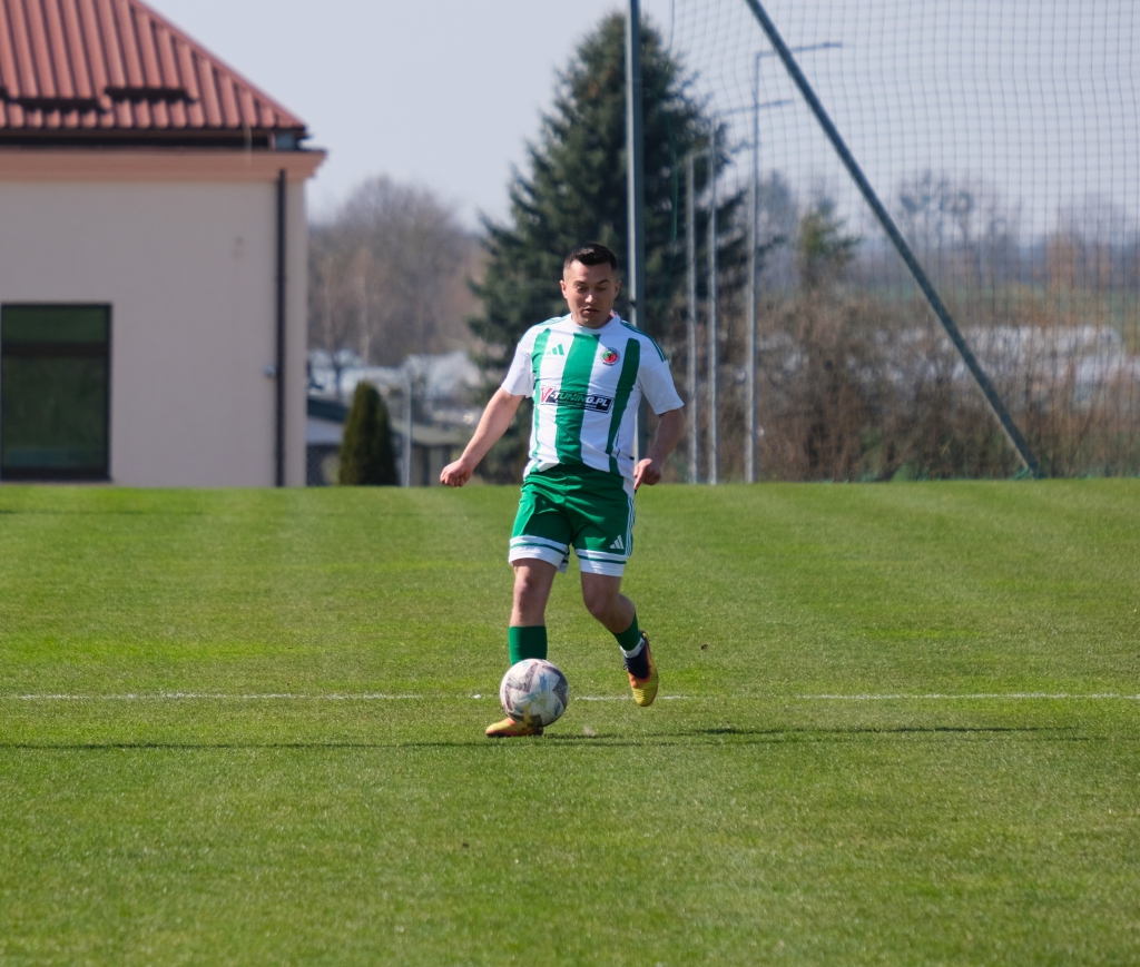 Bramkę dla naszej drużyny zdobył Kacper Świtała, który po rzucie rożnym popisał się skutecznym strzałem głową. Już w 8 minucie gospodarze zostali osłabieni czerwoną kartką dla bramkarza, który złapał piłkę poza polem karnym. Gol zdobyty w 34. minucie dawał nadzieję, że w kolejnych fragmentach meczu będziemy kontrolować wydarzenia na boisku.