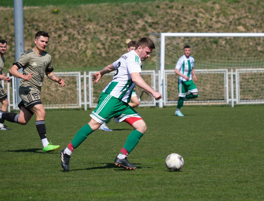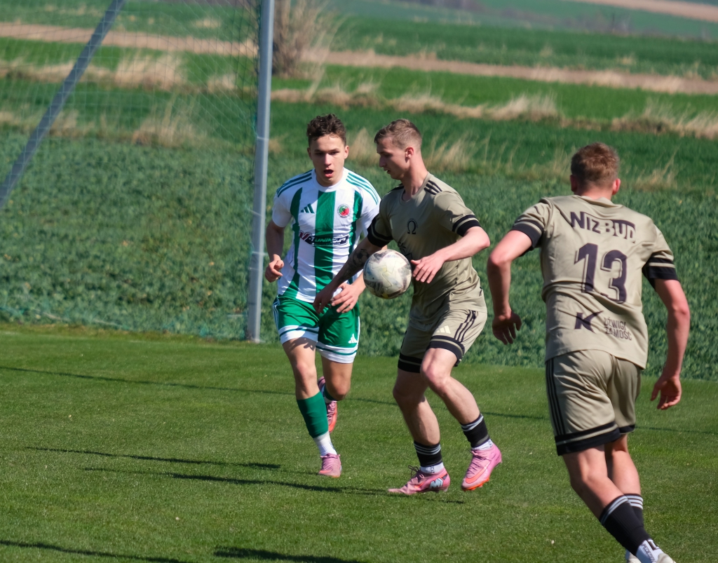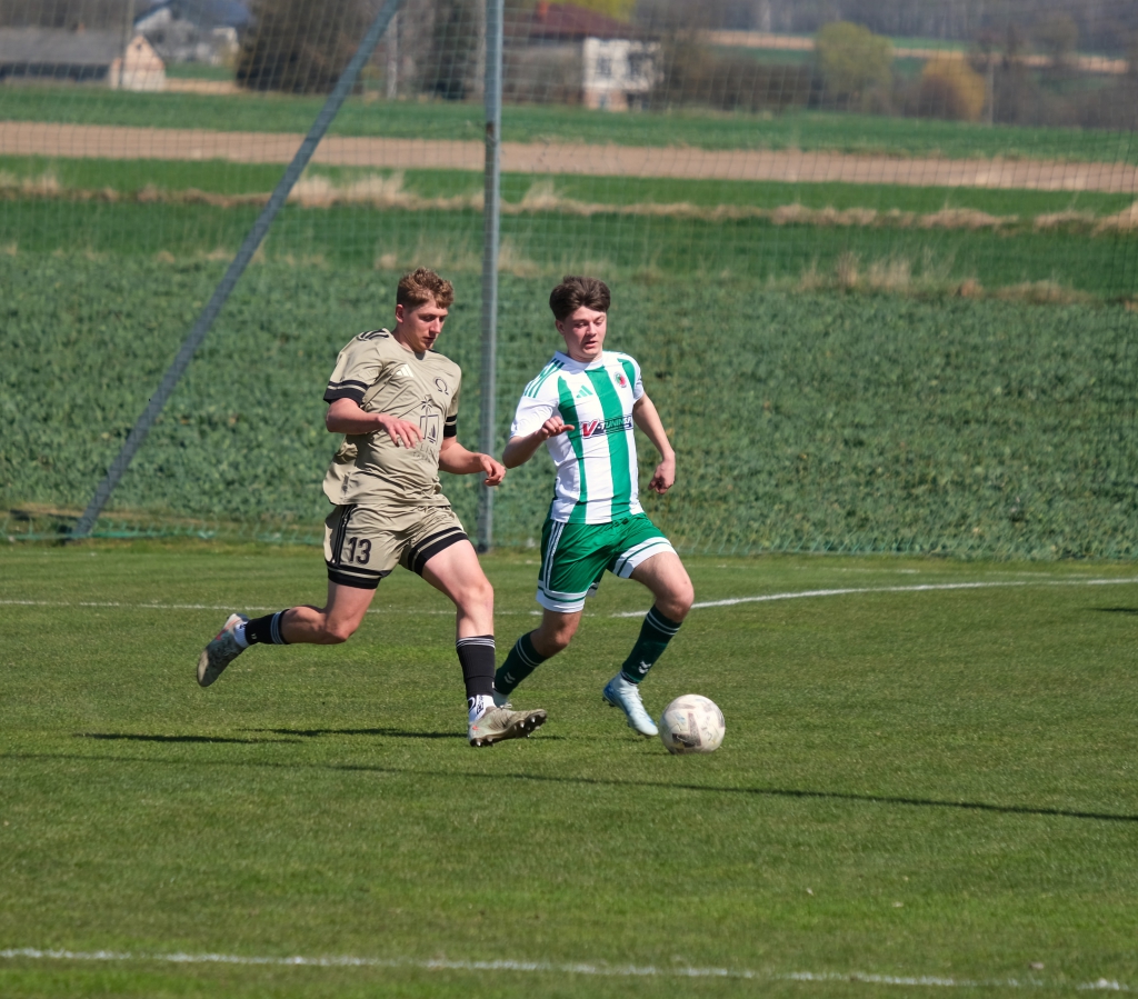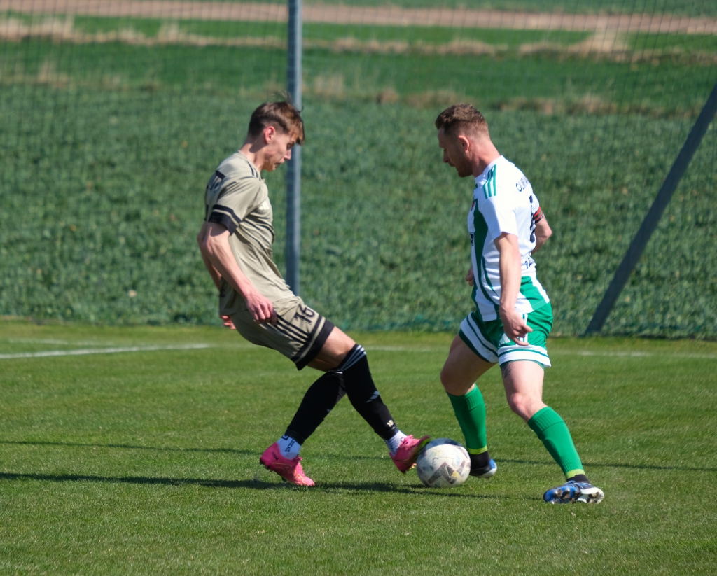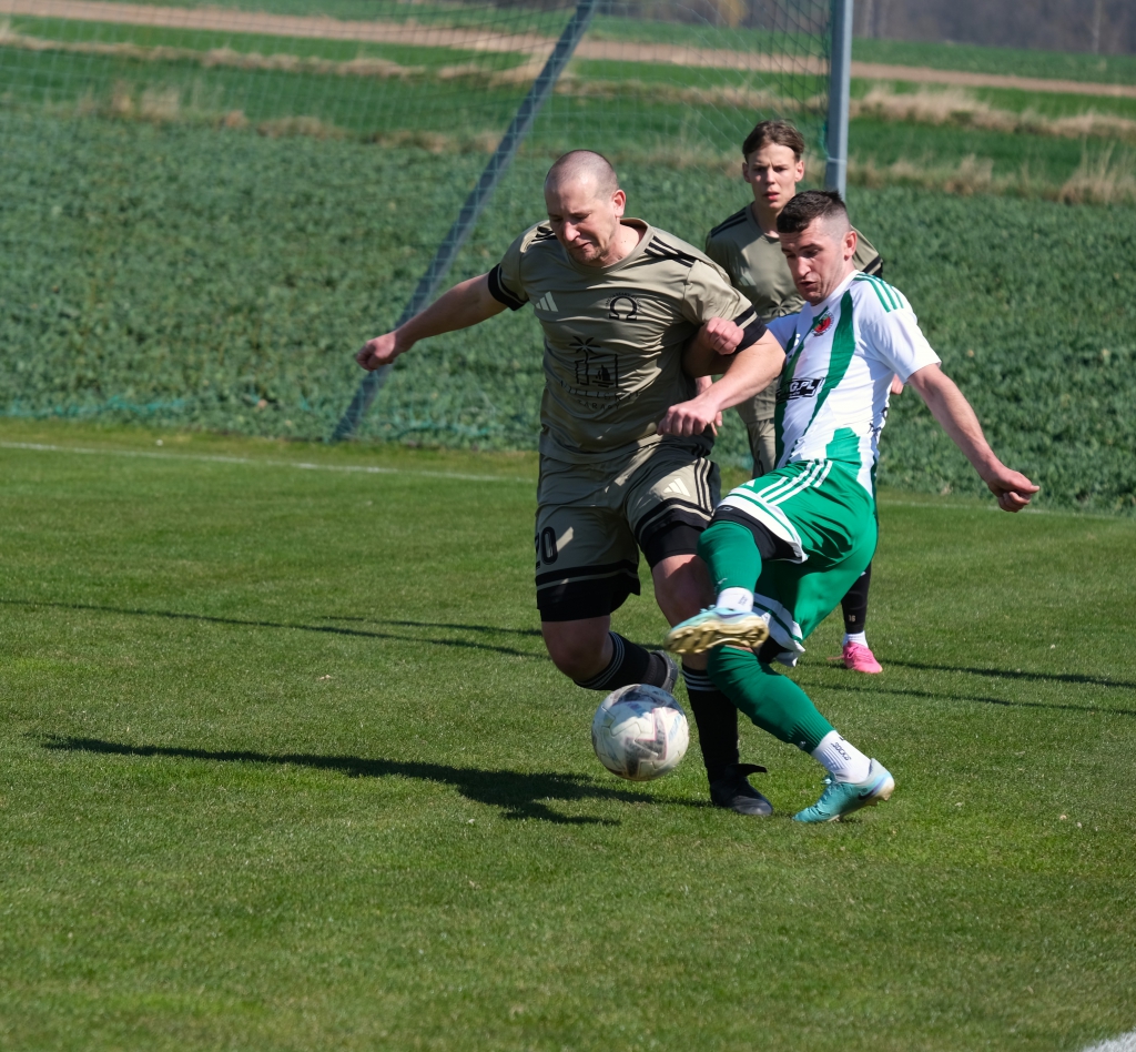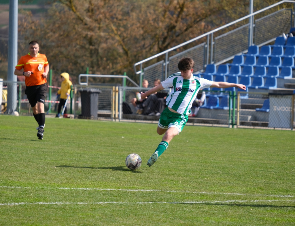 Bramkę dla naszej drużyny zdobył Kacper Świtała, który po rzucie rożnym popisał się skutecznym strzałem głową. Już w 8 minucie gospodarze zostali osłabieni czerwoną kartką dla bramkarza, który złapał piłkę poza polem karnym. Gol zdobyty w 34. minucie dawał nadzieję, że w kolejnych fragmentach meczu będziemy kontrolować wydarzenia na boisku.