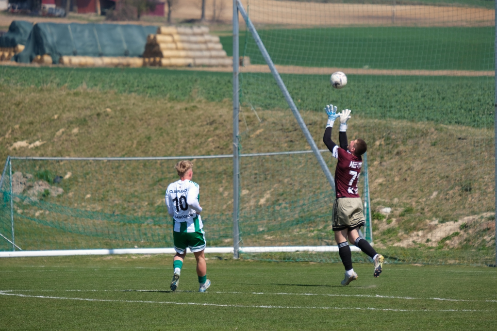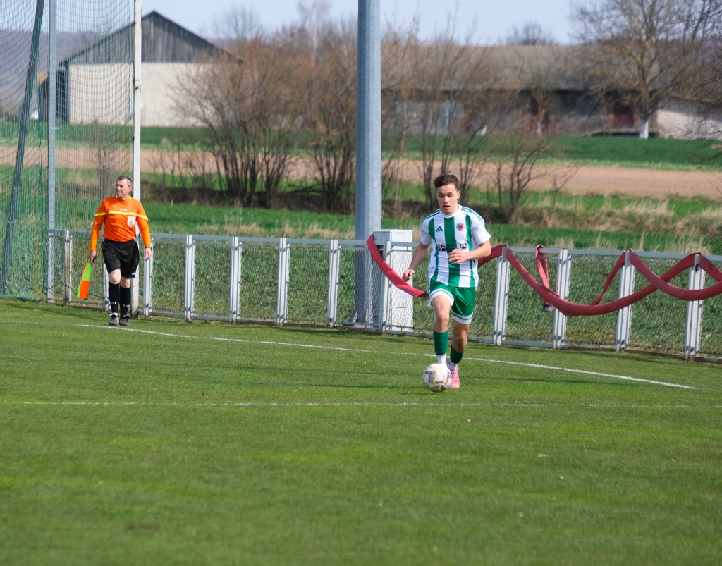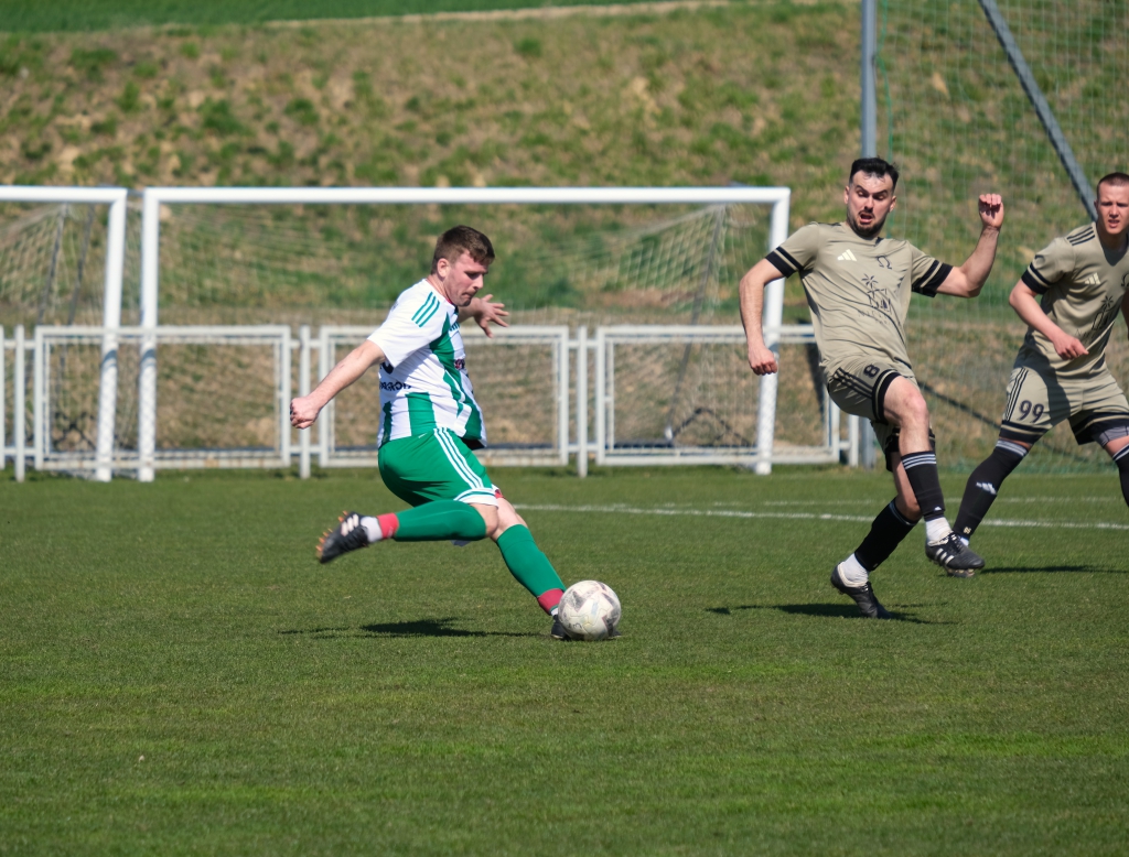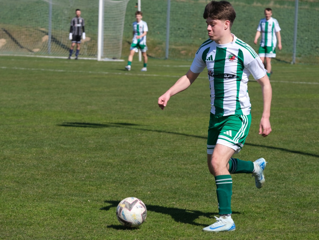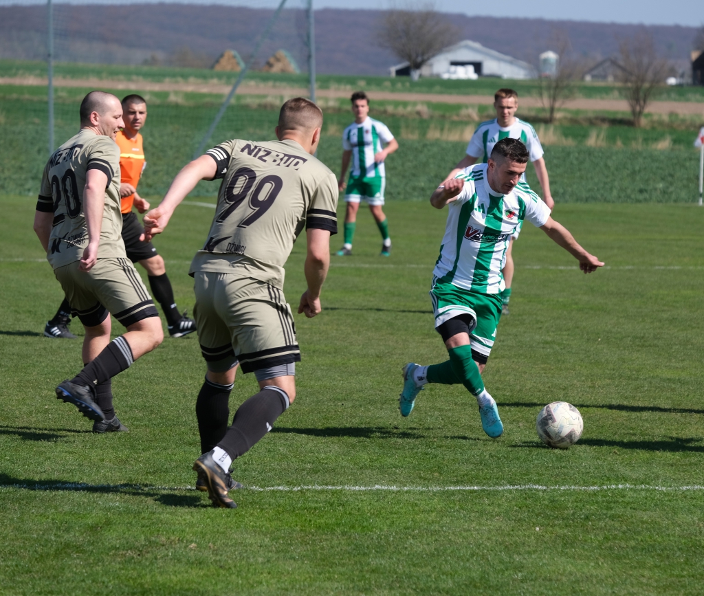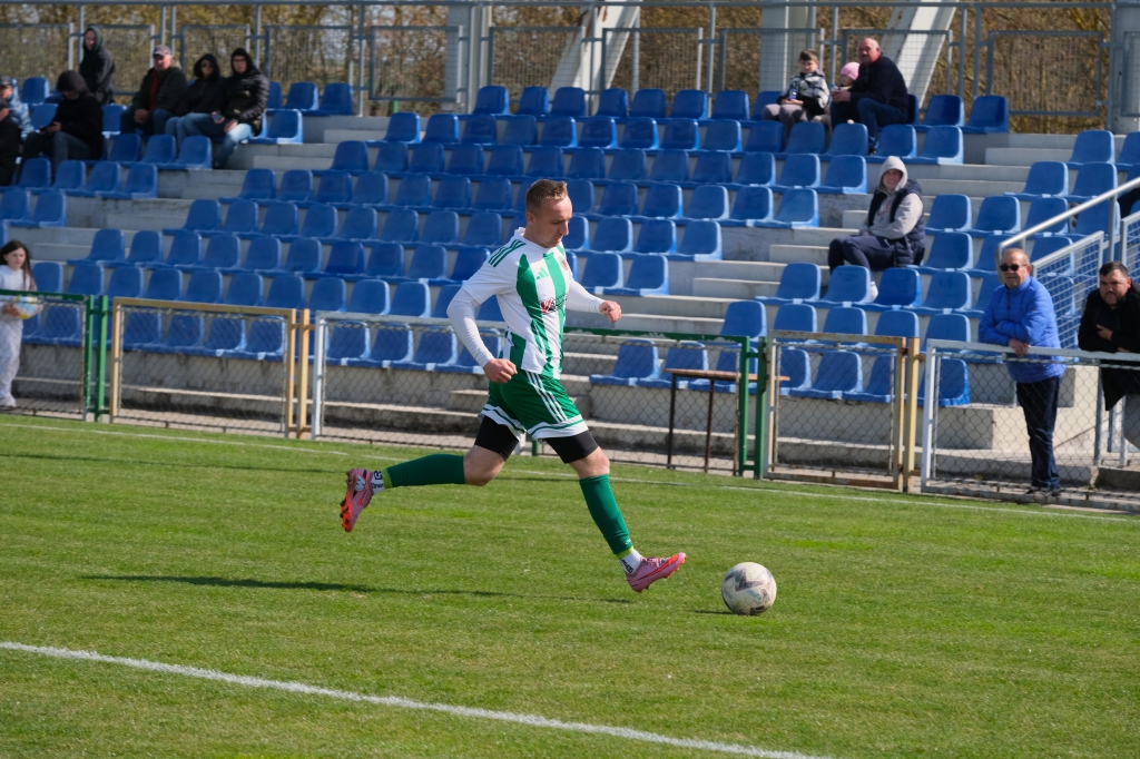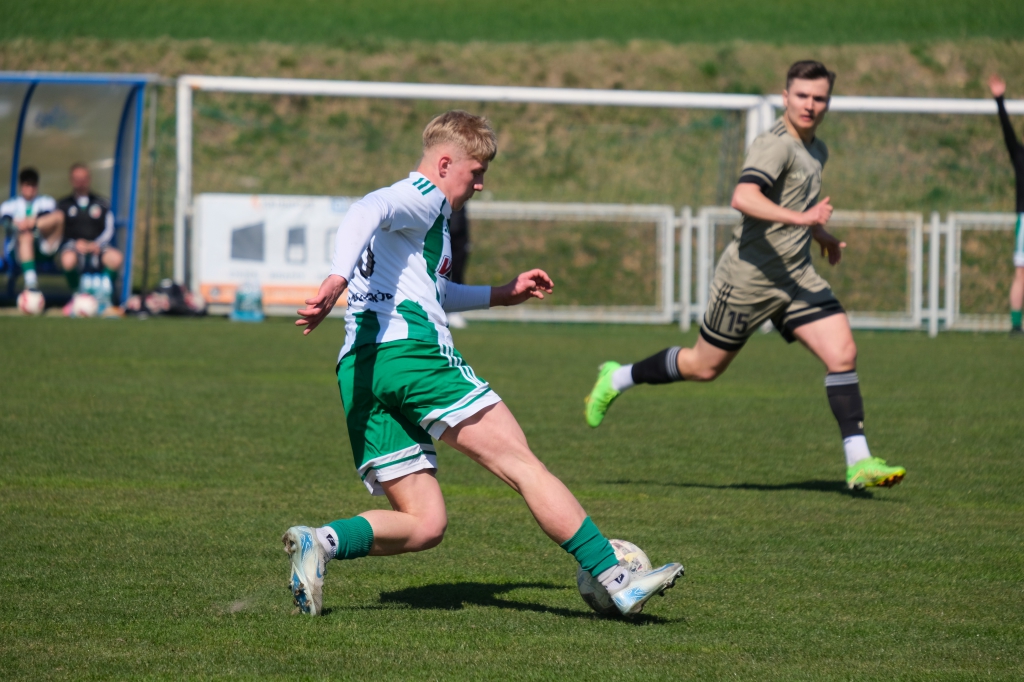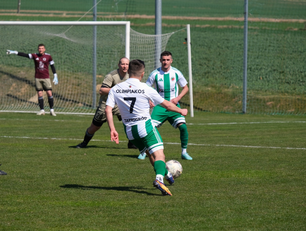 Bramkę dla naszej drużyny zdobył Kacper Świtała, który po rzucie rożnym popisał się skutecznym strzałem głową. Już w 8 minucie gospodarze zostali osłabieni czerwoną kartką dla bramkarza, który złapał piłkę poza polem karnym. Gol zdobyty w 34. minucie dawał nadzieję, że w kolejnych fragmentach meczu będziemy kontrolować wydarzenia na boisku.